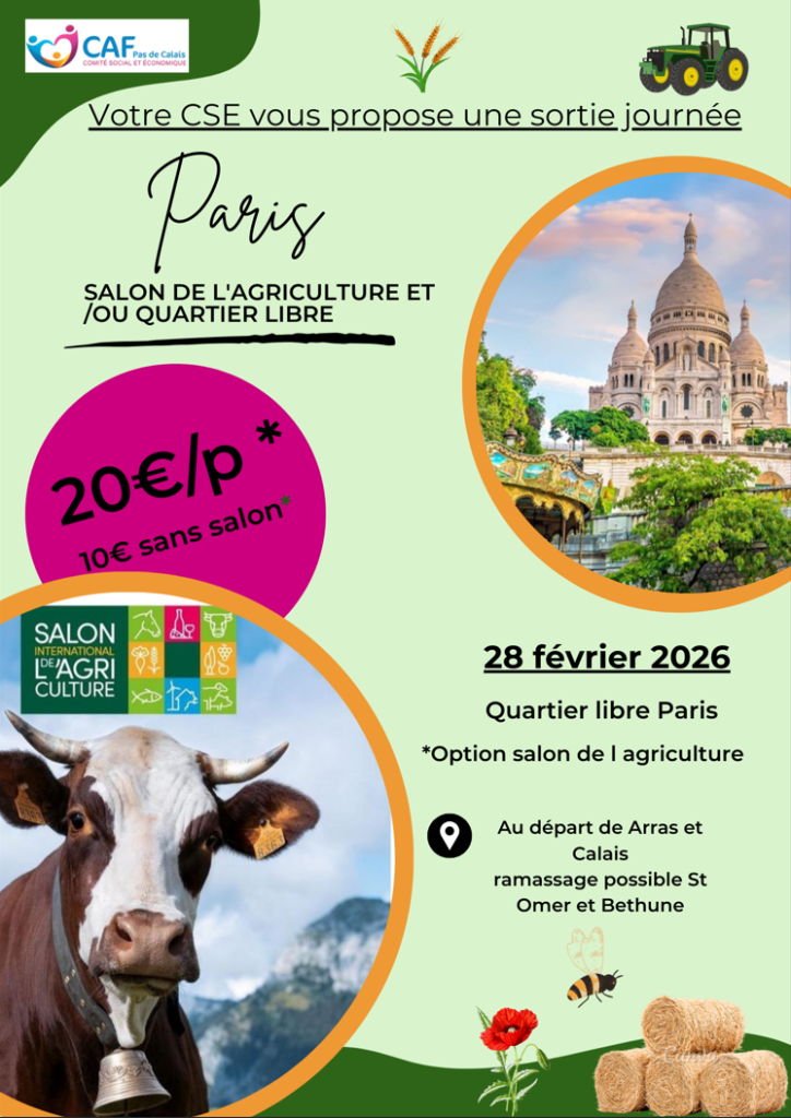 Le CSE propose une sortie   » journée au Salon de l’Agriculture ou une journée Paris Libre  le samedi 28 Février 2026.
